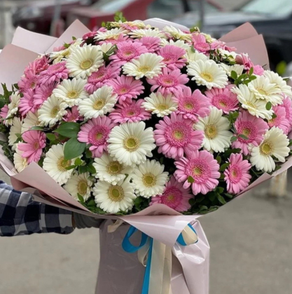 Букет из 101 белой и розовой герберой | Купить в Ханое