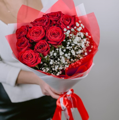 Букет из красных роз и гипсофилы | Купить в Ханое